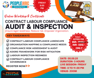 Contract labour compliance isn’t just a statutory checkbox—it’s a strategic imperative. With increasing scrutiny from regulators and rising liability risks for principal employers, this workshop equips you to: