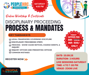 This 3-hour hands-on workshop, led by a seasoned Labour Laws Compliance Strategist, is designed to guide HR professionals, people managers, and compliance officers through the complete disciplinary proceeding processβfrom identifying misconduct to drafting the final order.