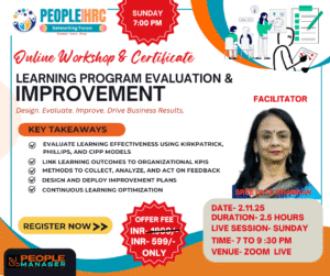 Organizations spend significant resources on training, but how often do we assess if those trainings are actually working? This practical 2.5-hour online workshop is designed specifically for HR professionals, L&D specialists, and training managers who want to move beyond training delivery and start measuring and enhancing its effectiveness.